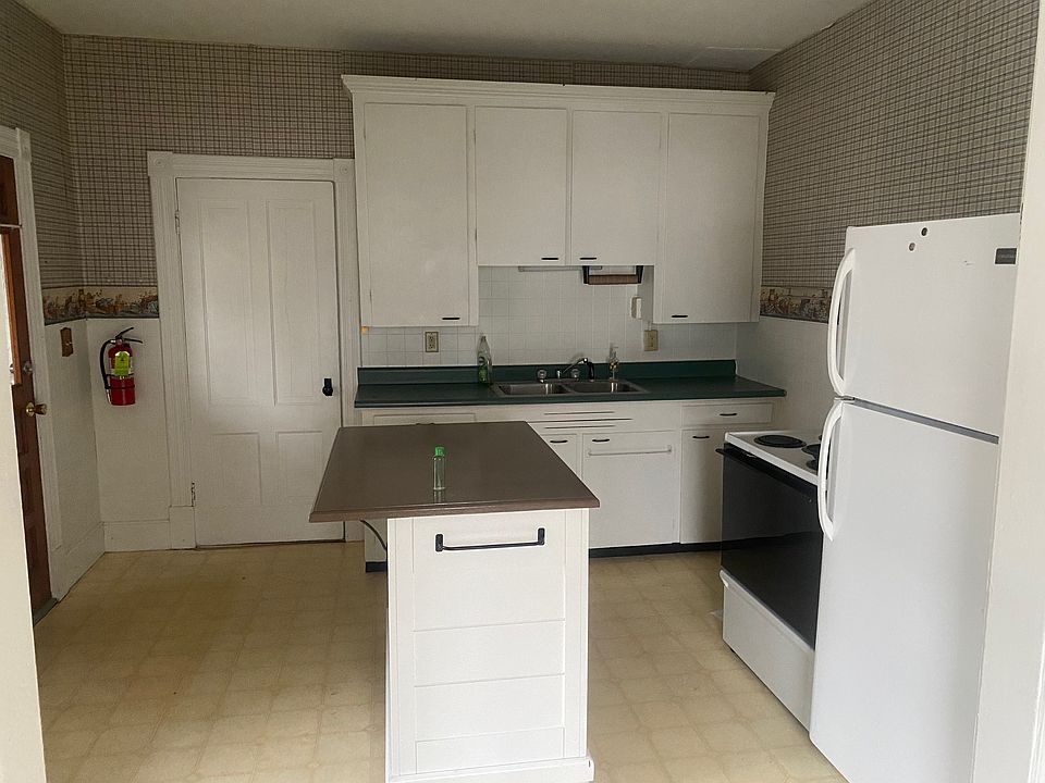 This is a spacious one bedroom apartment available January 1. It offers a large kitchen and a spacious living room area with a small balcony. Off street parking for one vehicle is available.