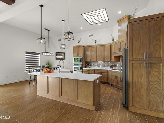 Experience modern elegance in this brand-new Custom Home, proudly featured in the 37th Annual Festival of Homes. Located on a corner lot in Horizon City, this transitional single-story residence spans 2,411 sq. ft. and offers 4 spacious bedrooms, 3 luxurious baths, and a private home theater. Step inside to discover bright, airy interiors highlighted by light-colored cabinetry, designer flooring, and detailed wall accents that create a warm, refined ambiance. The kitchen and baths showcase stunning finishes, including wall cladding, rounded mirrors, and elegant fixtures that exude style and sophistication. Enjoy seamless indoor-outdoor living with fully landscaped front and back yards—perfect for relaxing or entertaining. With its timeless design and thoughtful craftsmanship, this Custom Built Home is sure to impress even the most discerning buyer.