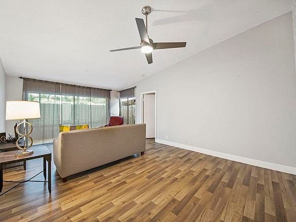 Upon entering this beautifully renovated 3 bedroom, 2 bath villa, you are greeted by a sun filled living area with vaulted ceilings and flawless laminate flooring. Pass through to the state-of-the-art kitchen to discover granite countertops, full granite backsplash, stainless steel appliances, sleek modern light fixtures, a greenhouse window and a breakfast nook. Spacious master retreat with a slider to the private patio and a large custom walk-in closet. Updated master bath with granite countertops, a framed mirror and a walk-in shower. Bedroom #2 also offers a slider to the patio. Enjoy a quiet evening on the oversized screen enclosed patio. The Meadows is located close to shopping, dining, entertainment, major highways and airports.