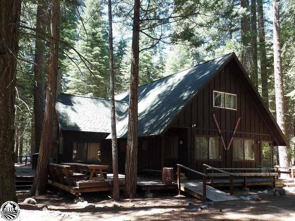 This may be the largest cabin in Pinecrest, it was built before the forest service restricted the size a cabin could be built, this huge cabin is 2100 sq. feet and had 4 very spacious bedrooms, 2 bathrooms, and 2 living rooms and fireplace in one living room and an airtight wood stove in the other. A large open kitchen with a huge dining room table large enough to seat everyone. Outside on the level lot is a giant wrap around deck with room for everyone to be doing something under the stars and in the forest. Privacy abounds with room all around the cabin yet just a short walk to Pinecrest Lake and the Com'l. area. This is the perfect cabin for that large extended family or 2 families together. Call your realtor to see the extra special large Pinecrest cabin.