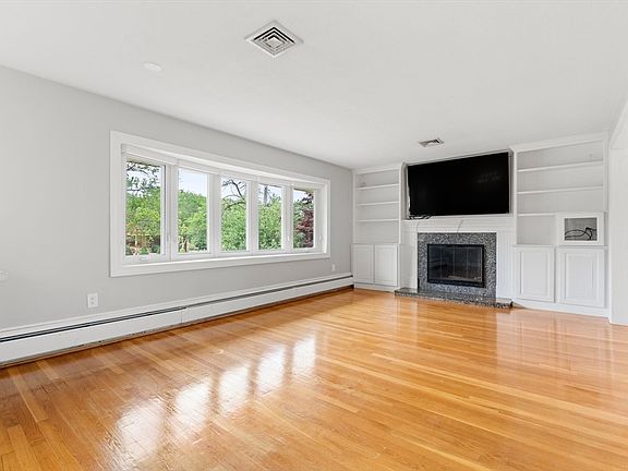 Step inside this meticulously maintained & updated brick-front split-level home, with hardwood floors & an abundance of natural light. The skylit kitchen features rich wood cabinets, Corian® countertops, & stainless-steel appliances. It seamlessly connects to both the dining room & a spacious enclosed porch, which transforms into a screened porch perfect for summertime entertaining, & overlooks a large, fenced yard. The living room is centered on a handsome fireplace with granite surround, flanked by a custom-made mantel, built-in bookcases, & cupboards. 3 comfortable bedrooms & full bath complete the main level. Downstairs, a spacious family room with fireplace offers additional living space, alongside a full bath & a versatile utility room. The 2 car garage is accessible from this level. Discover the unparalleled lifestyle Dedham has to offer - nearby vibrant village center & Charles river. Convenient to Legacy Place and easy access to major highways and commuter rail stations.