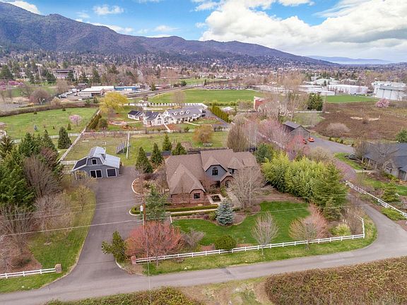 N.W. Contemporary Custom Home close to downtown Ashland; Privacy on 2.04 Acres w/TID Irrigation, Natural Gas, Spectrum Cable, Broadband internet, Solar electricity & Solar Heat for in-ground Salt Water Pool w/natural gas heater. New updates in 2017. Wood, stone/tile floors, Water featured entry, Japanese garden w/2nd water feature, stone/paver walkways w/walking bridge; Beautiful landscaping, fruit trees & garden areas. Fenced pasture; lg RV barn/shop w/unfinished room upstairs. Open kitchen w/dbl ovens, island, Wolf gas range, granite counters, Wet Bar w/wine fridge. Family rm w/French doors lead to office/den w/built-in bookcases. Outdoor covered sitting rm overlooking pool & landscaping w/ natural gas BBQ Grill. Main level master w/gas fireplace & French door to covered patio. Lg Walk-in closet, dbl sinks, soaking tub, dbl head shower plus water closet. Living rm w/built-ins, gas fireplace & French door to covered patio. Upstairs is 2nd suite w/2 bdrms & bath.