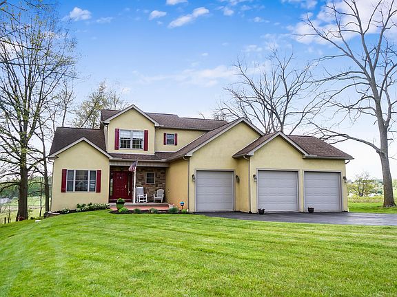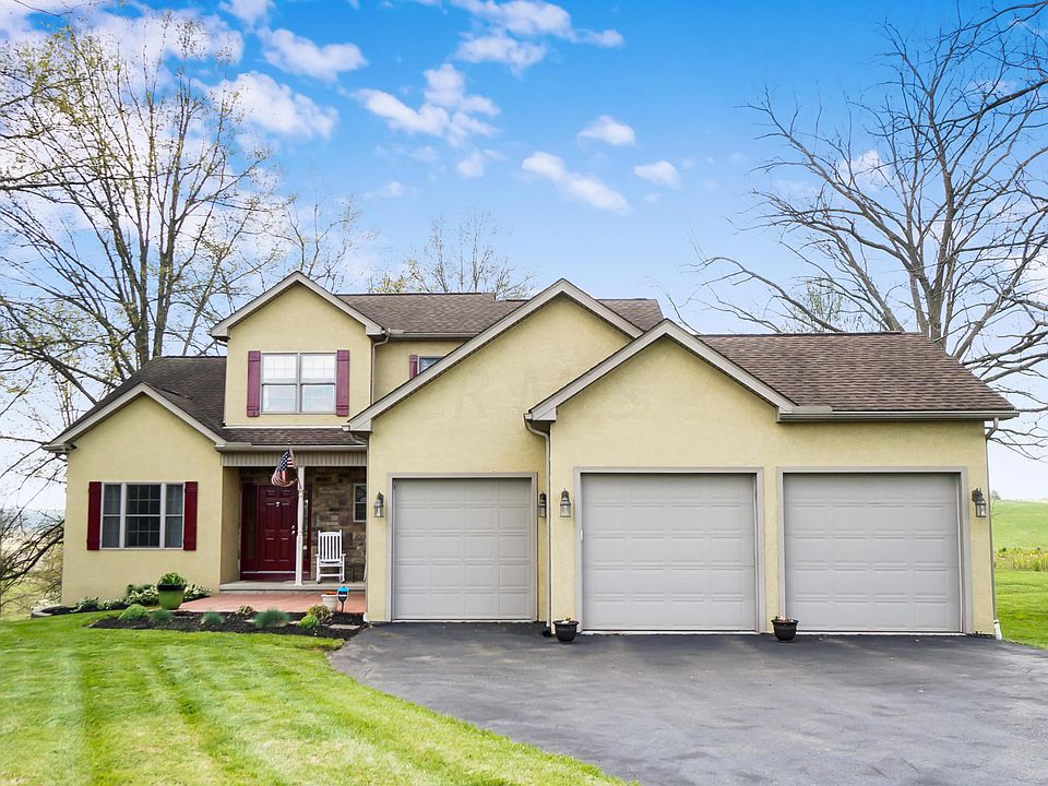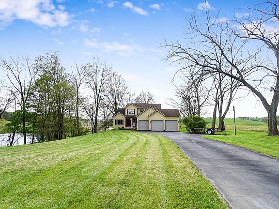 VIEWS FOR MILES! Beautiful home with mother-in-law suite with a walk-out basement. Soaring ceiling in Great Room with fireplace that opens to Eat-In Kitchen with stainless steel appliances, center island and pantry. First floor den or dining room and Master Suite with walk in shower and first floor laundry. Large Outbuilding for your toys or hobbies and three car garage. Neighboring property has pond, the views are outstanding. Large rear deck and hot tub and city utilities.