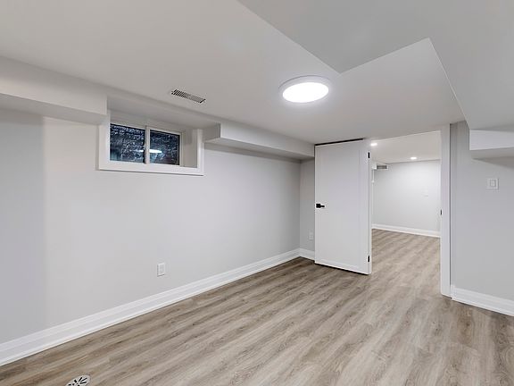 Occupancy for 700 sqft 1-bedroom, 1-bath basement unit. Central heating and AC. Utilities excluded. Included appliances: fridge, range hood, stove, washer, and dryer.