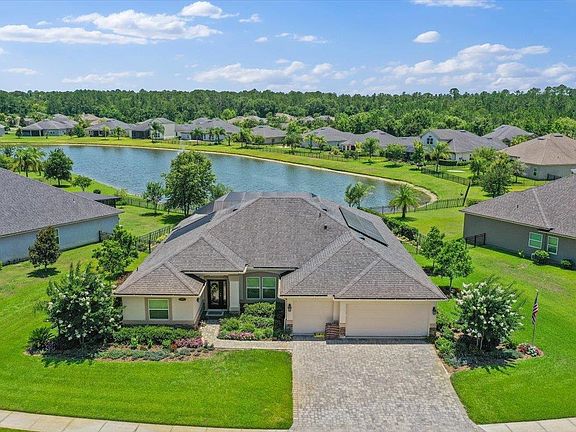Welcome home to a stunning residence located within the highly desirable gated community of Wood Lake, offering both security and exclusivity. This elegant home features four spacious bedrooms and three modern bathrooms, providing ample space for family living and guests. The interior boasts upgraded cabinets and custom closet systems, enhancing both functionality and aesthetic appeal. Step outside to enjoy the luxurious, extra-large swimming pool—perfect for relaxing, entertaining, or staying active—set amidst beautifully landscaped grounds that offer privacy and curb appeal. The expansive lanai provides an ideal outdoor living area, perfect for hosting gatherings or enjoying quiet evenings in the serene surroundings. Energy efficiency and environmental consciousness are prioritized with the installation of solar panels, helping to reduce energy costs while supporting green living. This is premium gated community living just minutes to the pristine beaches of Crescent Beach!