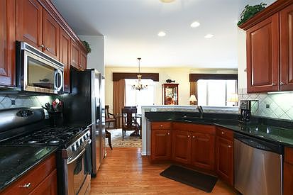 Gorgeous updated 3 beds with finished English basement w/spectacular golf course view. Kit w/SS appliances, granite counters, tile backsplash, cherry cabs & 2 pantries! First flr laundry, HW Floors on 1st floor. SO well maintained. Really, NOTHING to do but move in! Generous sized beds upstairs. Basement w/great storage, entertainment area & full bath. This is a 10! Rubber matted floors in garage-so many improvements