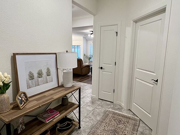 This stunning all-brick 4 bedroom, 2 bath home features a spacious split floor plan with a cozy gas fireplace and elegant crown molding in the living room and primary suite. the kitchen boasts stainless steel appliances, a pantry, and stylish finished throughout. The primary suite offers a relaxing whirlpool tub, separate shower, and double vanity. Additional highlights include a utility room, garage door opener with keypad entry, pull-down attic storage, and energy-efficient features. Step outside to a covered patio perfect for outdoor entertaining!