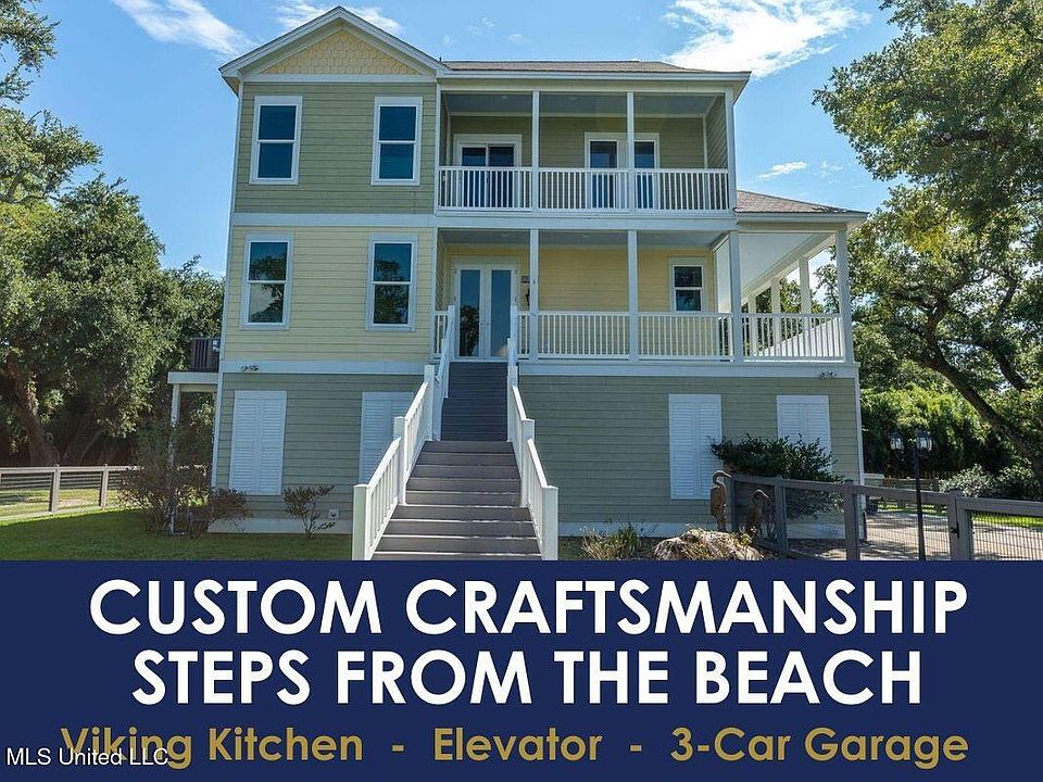 Listed $45k below the most recent appraisal and just steps from the white sand shoreline, this custom-built coastal retreat in the coveted Long Beach School District blends thoughtful design with high-end comfort. Underneath, a 3-car garage, enclosed workshop, and full bath offer space for tools, toys, and post-beach cleanups. Inside, dramatic tongue and groove pine ceilings soar above the open living area, anchored by rich built-ins and triple crown molding. Brand new HVAC is sure to keep you cool, and the kitchen wows with Viking appliances, granite counters, and a wet bar made for entertaining. A second-floor loft-style living room overlooks the great room below, while the primary suite delivers spa-worthy luxury. A passenger elevator connects all three levels with ease. Outside, double front porches invite coffee and Gulf breezes, while a large rear deck offers sun and grilling space with room to gather. Don't miss this rare mix of craftsmanship, beach access, and everyday function. Be sure to check out the video!