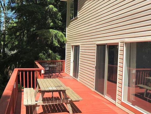 Spacious newly updated 4 bd 3 ba home overlooking peaceful woods. Enjoy the newly updated kitchen with farmhouse sink. black stainless steel appliances. large family room plus theater area & games room. Features include ductless heat pump, jetted tub in master suite, large deck new living room carpet & new wood flooring in kitchen, master suite & basement. Light & bright & short distance to pretty beaches.