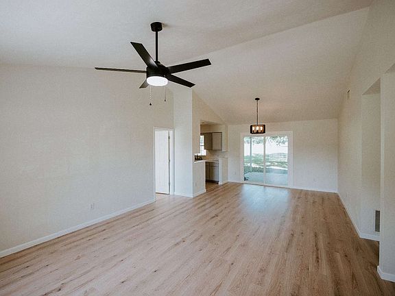 Huge backyardFreshly painted cabinetsNew countersCathedral ceilingsCovered patio
