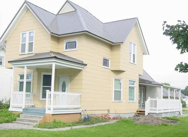 New Steel roof on home and on garage in July 2016. Updated circuit breaker box, main floor drywall/insulation/replacement vinyl windows/remaining vinyl to finish home included/central air conditioner included (not currently hooked up/ high efficiency water heater/kitchen & dining room floor tiles inc./newer exterior and interior doors and partially finished new kitchen cabinet. Sellers unable to complete home due to health reasons. The second floor has a new full 2nd bath. This home has great storage..tons of character.. There are more items included with the sale of the home. Immediate occupancy. The detached block garage..gives you extra great storage. The home has vinyl and slate siding..but remember..new siding to finish project is included! Great natural lighting..and the tray ceiling lights are wonderful..a must see! Call now to set up a showing. Home sold "as is".