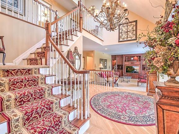 Custom built home brimming w/character filled features & upgrades. Vaulted ceiling foyer, flows into formal LR w/ wall of cherry built ins then into formal DR w/cherry wood flooring & designer light fixtures. Enjoy rear of the home with its HUGE chef's kitchen boasting solid natural maple cabinets, granite counters, high end s/s appliances & gleaming hardwoods. Warm/inviting Sitting area off kitchen w/stacked stone wood burning FP. HUGE vaulted ceiling FR provides a breathtaking view of the private/wooded rear yard. It features hardwood flooring w/mahogany inlay & cherry wood/granite designer fireplace. SIX spacious bedrooms including a large 1st fl master suite w/3 closets-(2)walk-ins. Updated spa-like master bath w/2-person jacuzzi, new oversized shower & new granite countertops.