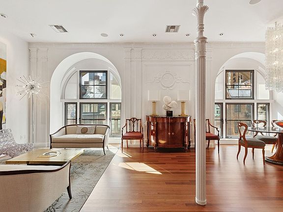 This extraordinary residence is the seamless combination of two loft-like duplexes, creating a one-of-a-kind home that is as dramatic as it is refined. With soaring double-height ceilings and abundant natural light streaming through its bright southern and western exposures, the space celebrates its original Masonic architectural details while embracing modern sophistication. Walnut floors, built-ins, and hand-crafted walnut doors by expert European artisans enrich every corner, while thoughtfully designed recessed lighting highlights both the home's architecture and any distinguished art collection.