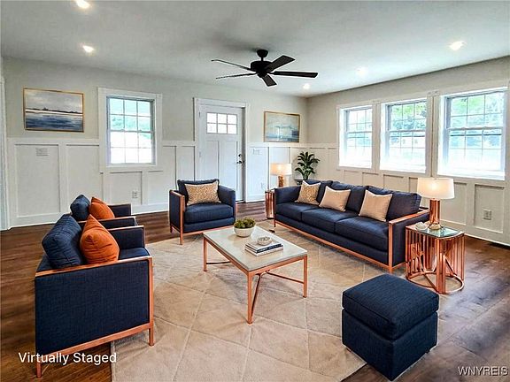 Open House Sun Oct 12, 11:00AM - 1:00PM. Step into your dream home, a stunning beachy farmhouse style built in 2025, perfectly designed for modern living on a 80x117 lot with no side or rear neighbors. This beautiful new build features an open concept layout that seamlessly blends style and functionality. Enjoy the generous open floor plan adorned with engineered hardwood wainscoting that adds warmth and character. The heart of the home boasts a wealth of cabinetry, including 39.5-inch Woodmark white kitchen cabinets, complemented by luxurious quartz countertops and a charming farmhouse sink. Master suite retreat to the front master bedroom featuring a large 4x5 walk-in closet with wainscoting detail and a spacious master bath. Window ledges measuring 4.5 inches wide allow for ample natural light, while ceiling fans in all bedrooms, the living room, and kitchen provide comfort year-round. Recessed lighting in the living/kit areas creates a bright and inviting atmosphere. The main bath features a walk-in shower with a sleek glass door. The fully insulated walk-out basement w/bilco doors, is ready for your finishing touches, providing endless possibilities for additional living space. Equipped with a tankless hot water heater, pex plumbing, sump pump, 220 line, panel box ready for A/C, generator & lights to garage. Enjoy a covered front porch measuring 16x13, perfect for relaxing or entertaining. Stamped concrete sidewalks. The extra-wide concrete driveway offers ample parking and space for a future 14X24 garage w/8" thick concrete. Fully insulated attic. Situated just a 3-minute drive to Point Breeze Beach, AJ Schmidt School, 6 minutes to Evangola State Park & 25 miles to Buffalo, this home combines the tranquility of beachside living with convenient access to local amenities. Don’t miss out on this exceptional opportunity to own a beautifully designed farmhouse that perfectly balances modern comforts with coastal charm! The assessor will calculate the taxes. Seller will consider offers between $320,000.00-$339,000.00.