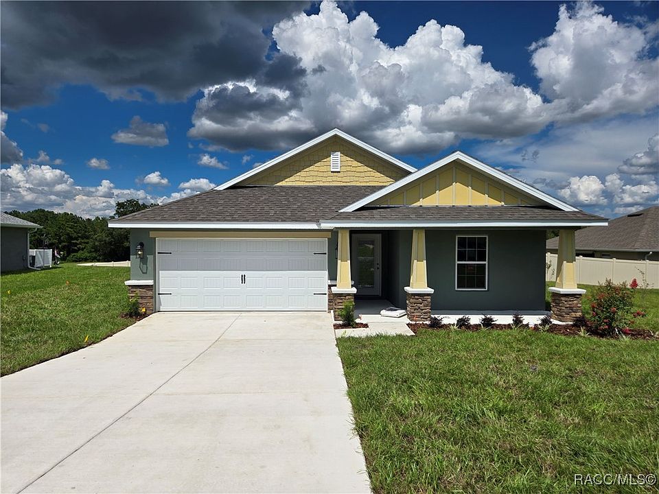 Friday, Oct. 24th – Thursday, Oct. 30th- Builder Blowout – Limited Time This residence features a covered back lanai equipped with cable hookup, stainless steel appliances, an owner's suite with a walk-in closet, and generously sized secondary bedrooms. The kitchen boasts a large island, breakfast bar, pantry, and an open design that connects to the family room. Ceramic tile flooring is present throughout the home except in the bedrooms. Both the front porch and street lighting contribute to a pleasant evening atmosphere. The property is a newly updated 1512 floor plan, comprising three bedrooms, two bathrooms, and a two-car garage. Included upgrades are a mini blinds insert for the back door to the covered patio, a stainless steel appliance package, beveled-edge countertops in both the kitchen and bathrooms, a separate tiled shower with lighting in the owner's bathroom, wood cabinetry, and vaulted and volume ceilings. Located on an interior lot, this homesite permits fencing in accordance with deed restrictions.