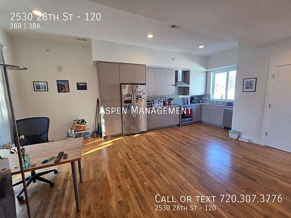 Upstairs, you'll find two comfortable bedrooms and a full bathroom with a deep soaking tub. One bedroom offers a private balcony overlooking the Flatirons, hike/bike path, and tranquil pond. A convenient bath is located on the main level, and a washer and dryer are included for your use.
