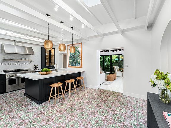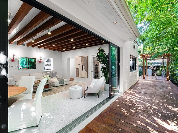 Nestled on a quiet, tree-lined street in North Coconut Grove, this charming Old Spanish–style residence offers 2,615 SF of living space on a 6,888 SF lot. The 4-bed, 3.5-bath home blends historic charm with modern updates, featuring wood-beamed ceilings, European tile and hardwood floors, and impact windows. The open kitchen boasts marble countertops, custom cabinetry, premium appliances and a dedicated breakfast area. Enjoy seamless indoor-outdoor living with sliding doors leading to a lush backyard, wood deck, and pergola. Additional highlights include an office/multipurpose room, laundry room, and carport. Close to bayfront parks, marinas, and the Grove’s vibrant village center.