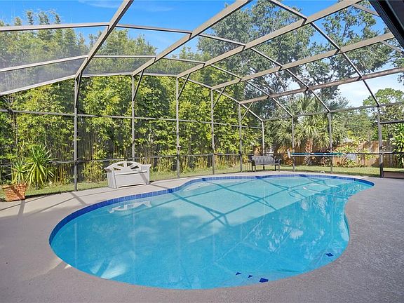 Welcome to 2530 Creekview Circle in charming Bear Creek in Oviedo, FL — where style, space, and upgrades come together in a truly inviting home. This beautifully maintained 4-bedroom, 2.5-bath split-bedroom pool home offers over 2,101 square feet of thoughtfully designed living space on more than a quarter-acre lot, nestled in a quiet and popular neighborhood. From the moment you walk in, you'll notice the bright and open layout, ideal for both everyday living and entertaining. The heart of the home is the stunning updated kitchen, showcasing over $45,000 in renovations including custom solid wood cabinets, granite countertops, stainless steel hardware, and an oversized 8-foot island with bar seating for four or more. Stylish ceramic tile flooring, undermount cabinet lighting, and a well-thought-out layout make this kitchen both functional and beautiful — truly a chef’s dream and entertainer’s paradise. Just off the kitchen is the formal dining area, adjacent to a wet bar and a convenient half bath with direct access to the pool and patio, perfect for entertaining guests. The primary suite is spacious and private, offering direct pool access, a large ensuite bathroom with a walk-in shower, a separate tub/shower combination, a large vanity, and a spacious closet. Bedroom 2, located near the foyer, is ideal as a guest suite, nursery, or home office. Bedrooms 3 and 4 are tucked away on the opposite side of the home and share a spacious second full bathroom with ample cabinetry and counter space. Step outside to your own private retreat featuring an oversized screened patio and a resurfaced pool (completed in 2018), complete with a solar heating system (added in 2019), a new pool pump and timer, and an updated cool deck surface in 2023. The backyard is framed by lush bamboo landscaping, creating a tranquil and private space ideal for relaxing or hosting family and friends. The home has been extensively upgraded over the years, including a new roof installed in 2018, dual AC units replaced in 2014, hot water heater, a skylight that fills the space with natural light, all-new interior doors installed in 2013, popcorn ceilings removed throughout, and attic insulation added in 2023 for energy efficiency. The guest bathroom was renovated in 2015, the electrical panel was replaced in 2019, and a full home re-pipe was completed in 2012. You'll also appreciate the addition of seamless gutters and downspouts in 2018. Located just minutes from top-rated Seminole County schools, shopping centers, restaurants, parks, and entertainment options, this home also provides easy access to major highways for stress-free commuting. Outdoor enthusiasts will love the proximity to the Cross Seminole Trail, a 29.4-mile paved multi-use trail just off Tuskawilla Road that connects Oviedo with Winter Springs, Lake Mary, and beyond. Whether you're searching for a place to unwind, entertain, or work from home, this thoughtfully updated property offers the perfect combination of comfort, privacy, and convenience. Don’t miss the opportunity to make this exceptional home yours — schedule your private showing today!