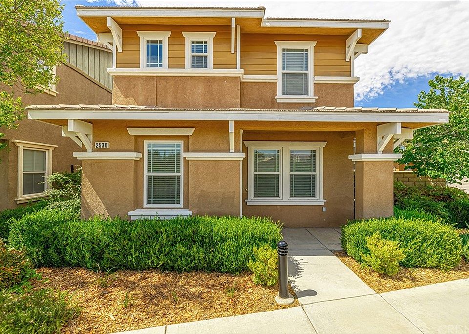 You will kick yourself if you miss this gorgeous 3 bed, 2.5 bath home with an open layout at the beautiful, gated Vineyards community. The first floor features tile flooring and a spacious living/dining room that opens to the kitchen with upgraded cabinets and a newer stainless steel refrigerator, microwave and stove. A laundry room and half bath complete the first floor. Upstairs you will find gleaming wood floors, a large master suite with a walk-in closet and dual sink bathroom, 2 secondary bedrooms and a two sink guest bathroom, all with upgraded cabinets. The home is at the south end of the complex with only one side neighbor. The covered patio is fully upgraded with maintenance-free turf and a designer quartz hand-laid rock wall with irrigated bougainvillea vines, perfect for sitting or entertaining. The complex features 2 Tot Lots, basketball and volleyball courts, a greenbelt, private security, and it is close to area shopping and transportation.