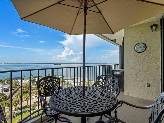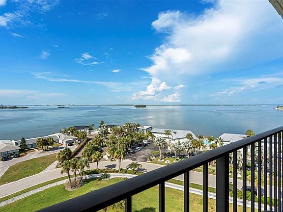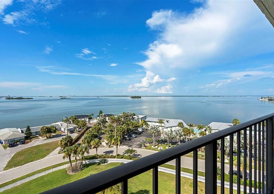 Breathtaking, panoramic water view from this 9th floor condo in Marina Towers! Waterlines greet you as you step inside to find a welcoming split floor plan of 2 bedrooms and 2 bathrooms. The warm and inviting kitchen comes equipped with spacious Corian countertops, ample cabinetry with pull out drawers, appliances, washer and dryer. This open space flows to the dining and living areas, all with a gorgeous view of the intercoastal. Step outside onto the secluded balcony to watch the dolphins play and spectacular sunsets! Bathrooms are remodeled showcasing tiled showers with glass doors and vanities with granite. Brand new A/C, hot water heater 2023 and newer hurricane windows and sliders throughout. This home includes one of the exclusive, under building, private parking spaces! Climate controlled storage space. Enjoy the heated pool year-round along with the clubhouse equipped with pool/ping pong table and treadmill. Discover beautiful beaches at Honeymoon Island State Park which can be accessed by bike, or a short drive. You will find the Pinellas Bike Trail, golfing, restaurants, grocery stores and banks all within the area. Drive or bike north to Tarpon Springs and the sponge docks or south to quaint downtown Dunedin. There was no water intrusion in this building during last year’s hurricanes. This truly is a hidden oasis that you must see and make your new home today!