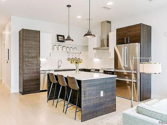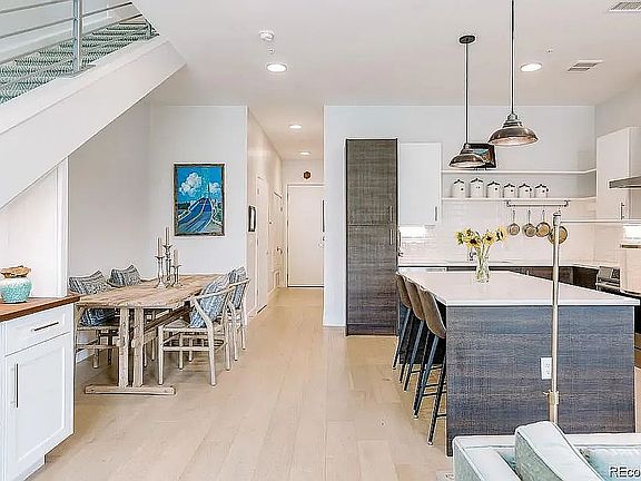 Relish in this stunning 3 bed, 3 bath, 3 story townhome in the sustainable community of S*Park. An open concept main floor spans across the dining nook, airy living room and high-end kitchen - complete with custom cabinetry, a roll-out pantry and stainless steel Bosch appliances. Modern features include beautiful light fixtures, upgraded electrical, custom closet finishes, a nest thermostat, custom window coverings and 10' ceilings throughout. A custom stair runner follows upstairs to the 2nd floor with dual master bedrooms, then up to the top floor with an additional family room and huge outdoor deck with a gas available and mountain + city views. Sustainability is incorporated into the development w/ solar powering the common areas and compost valet. The brand-new community centers around a private park w/ outdoor grills, dog run + urban garden. Don't miss the underground, heated parking garage w/ electric hook-ups, community fire pits + lounge and greenhouse by Altius Farms.
