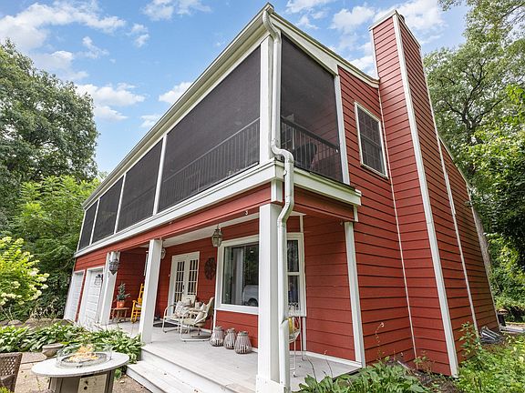 Nestled just minutes from the Lake Minnetonka shoreline, this enchanting 4-bedroom, 3-bathroom New Orleans-style home offers timeless charm, modern updates, and serene privacy on a beautifully landscaped 1.5-acre lot where nature and wildlife abound. Located at the end of a private road with no traffic. A welcoming front entry opens to a spacious living room featuring crown moulding and a cozy wood-burning fireplace—perfect for gatherings or quiet evenings. The formal dining room flows seamlessly into the large eat-in kitchen (ready for your design ideas), where you'll find maple hardwood floors, a second wood-burning fireplace, and an adjacent powder room. Just beyond, a sunken sunroom floods the space with natural light and provides walkout access to the paver patio and peaceful backyard retreat. Upstairs, you'll discover four generously sized bedrooms, including a spacious ensuite with private, screen enclosed balcony access—ideal for morning coffee or relaxing under the stars. The recently finished lower level expands your living space with a comfortable family room, office/flex area, and ample storage. Whether you're hosting loved ones or enjoying quiet mornings on the balcony, this home is a rare gem in a sought-after location with nature and wildlife.