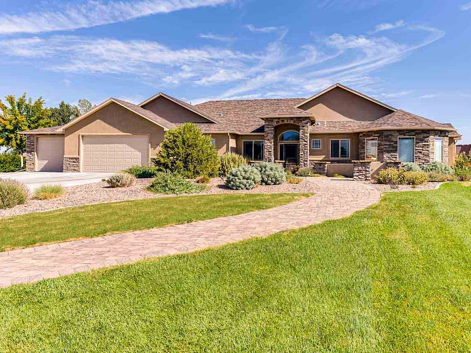 Sprawling stucco rancher in the desirable Greystone Estates, on 1.16 acres in Grand Junction, CO. Over 2600 square feet of open living space including four bedrooms, three bathrooms, large gathering area including living / kitchen/ dining room in addition to an office and a family room. Vaulted ceilings, split bedroom design (two master suites), beautiful gas log fireplace, pride of ownership inside and out. Gorgeous mature landscaping, ideal set up for outdoor entertaining including outdoor kitchen, private patio area, not to mention an attached 24x30 heated RV garage/ workshop. Attractive country setting, close to all amenities. If the RV garage isn't enough, there is room to build a shop. This home shows exceptionally well!