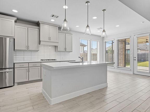 Beautiful home office with French doors set at two-story entry and a great extended patio for even more flexibility outside. Two-story family room opens to kitchen and morning area. Kitchen features large walk-in pantry and generous island with built-in seating space. Family room features wall of windows. First-floor primary suite includes bedroom with wall of windows. Dual sinks, garden tub, separate glass-enclosed shower and large walk-in closet in primary bath. Game room and all secondary bedrooms are upstairs. Extended covered backyard patio. Two-car garage. *Two Year Workmanship Perry Home Warrany is Valid Through March of 2026!*