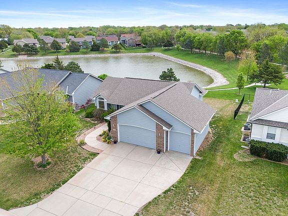 Welcome to this immaculate, one-owner waterfront home nestled in the highly desirable Southern Ridge subdivision, located within Goddard School District—and with all specials fully paid off! This move in ready 3 bedroom, 2 bathroom home not only offers over 1,200 sq ft of open-concept living on the main floor, but also a full unfinished basement—providing instant equity potential with room to add 2 more bedrooms, an additional bathroom, and a large family room. You'll love the spacious 3-car garage, featuring extra-tall doors for added clearance and convenience—perfect for larger vehicles, storage, or hobby needs. The thoughtful split-bedroom floor plan offers privacy for the primary suite, which showcases beautiful pond views, dual closets (his and hers), and a private ensuite bath. Secondary bedrooms are generously sized and well-separated, making this an ideal layout for families or guests. Step outside to your backyard oasis with no rear neighbors and direct views of the peaceful pond. Whether enjoying a quiet morning coffee or evening sunset, this outdoor space offers peace and beauty. Living in Southern Ridge means more than just a beautiful home - it's a lifestyle enriched by resort-style amenities. Just steps from your door, enjoy the zero-entry saltwater pool, perfect for relaxing on warm summer days. Kids and families will love the playground, sports court, scenic walking paths and stocked fishing ponds as it provides endless opportunities for outdoor enjoyment. Whether you're looking to stay active, connect with neighbors, or simply unwind in nature, this community has something for everyone. Don’t miss this opportunity to own a move-in ready home, with beautiful views, room to grow, in a fantastic neighborhood, and great school district that truly checks all the boxes.