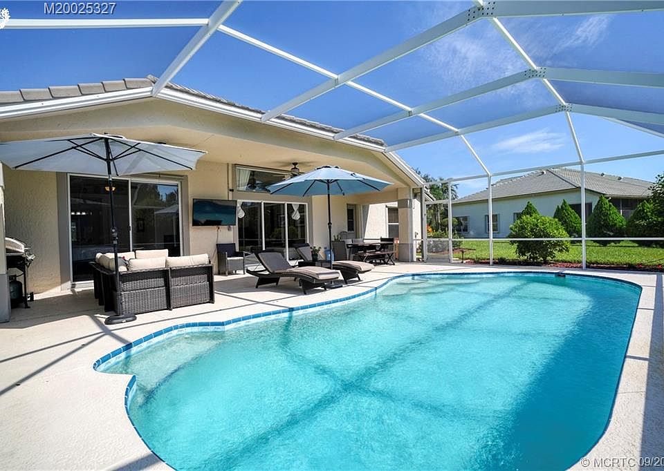 LOCATION, CONVENIENCE, & VALUE is what this updated 4 bedroom, 2 bath, CBS construction, split plan, pool home in the gated community of The Sanctuary at Hammock Creek offers to its next owners. The efficient floor plan maintains a cozy feeling with natural light throughout and features an open kitchen & family room, a formal dining room, a screened pool & covered patio, and a large backyard with preserve views. The spacious master suite has 2 walk-in closets, dual vanities in the bath, and a soaking tub that is a real gem to relax in after a long day. Located in the A rated Martin County school district and close to I-95 and the Florida Turnpike for commuters, and just minutes from shopping & dining in charming downtown Stuart. For golfers, the semi-private, Jack Nicklaus designed Hammock Creek Golf Club (membership is NOT mandatory) is also right there. This is the affordable Palm City pool home youve been searching for. Do not wait to see this one!