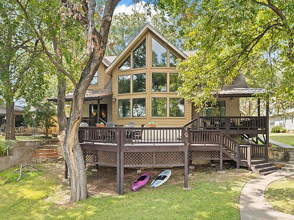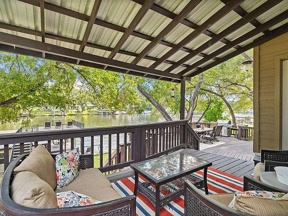 Stunning Craftsman-Style Lakefront Retreat on Lake LBJ with short term rental capability! Experience luxury lakeside living in this breathtaking Craftsman-style retreat on the highly sought-after Colorado Arm of Lake LBJ in Kingsland, Texas. This 4-bedroom, 4.5-bathroom home boasts 70 feet of pristine lakefront and includes a valuable additional lot complete with a storage barn. Step into the main home and be welcomed by soaring cathedral ceilings in the great room, flooding the space with natural light and capturing sweeping lake views. The gourmet kitchen is a chef’s dream with granite countertops, custom cabinetry, and ample workspace for entertaining. The main-level primary suite offers a tranquil escape with its en-suite bath, cozy sitting area, and private lakeside deck. Outdoor entertaining is made easy with multiple decks and a spacious wrap-around porch invites relaxed outdoor living—ideal for hosting gatherings or soaking in stunning sunsets. Additional features include: a 2 car garage with an insulated, air-conditioned interior—great for extra sleeping space or a hobby room, a charming garage apartment above with a full bath—perfect for guests or multigenerational living, a spacious metal workshop conveniently located across the street ideal for storing boats, jet skis, or lake gear, and a custom boat dock with bar, cable lift, storage, double jet ski lift, and a rooftop deck to enjoy panoramic water views. Whether you're searching for a full-time residence, vacation home, or investmen