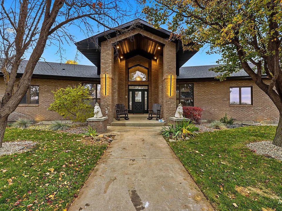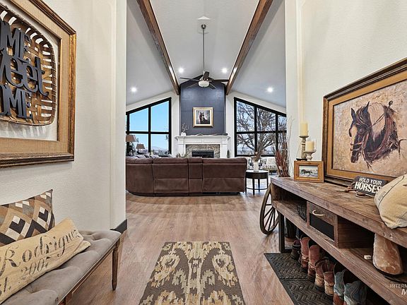 Enjoy vast skies & amazing views on this equestrian ranchette w/60x60 indoor riding arena, all the supporting tack rooms, 6 stables, 2 Barns & Chicken Coop! This beautiful & enormous remodeled home includes newer hardwood-style floors, plush pattern carpet, vaulted ceiling with pine with Cherry Fireplace, Updated Kitchen, Master Suite/Bathroom and all bathrooms. One of a kind horse property with 5721 square foot all brick home with view of the Boise front hills. Second Home-ADU Compliance and high end finishes that is additional 600 sq ft with large Living Room, Kitchen and Second Master suite. Buyer/Buyer's agent to verify with School District for current school boundaries. BTVAI