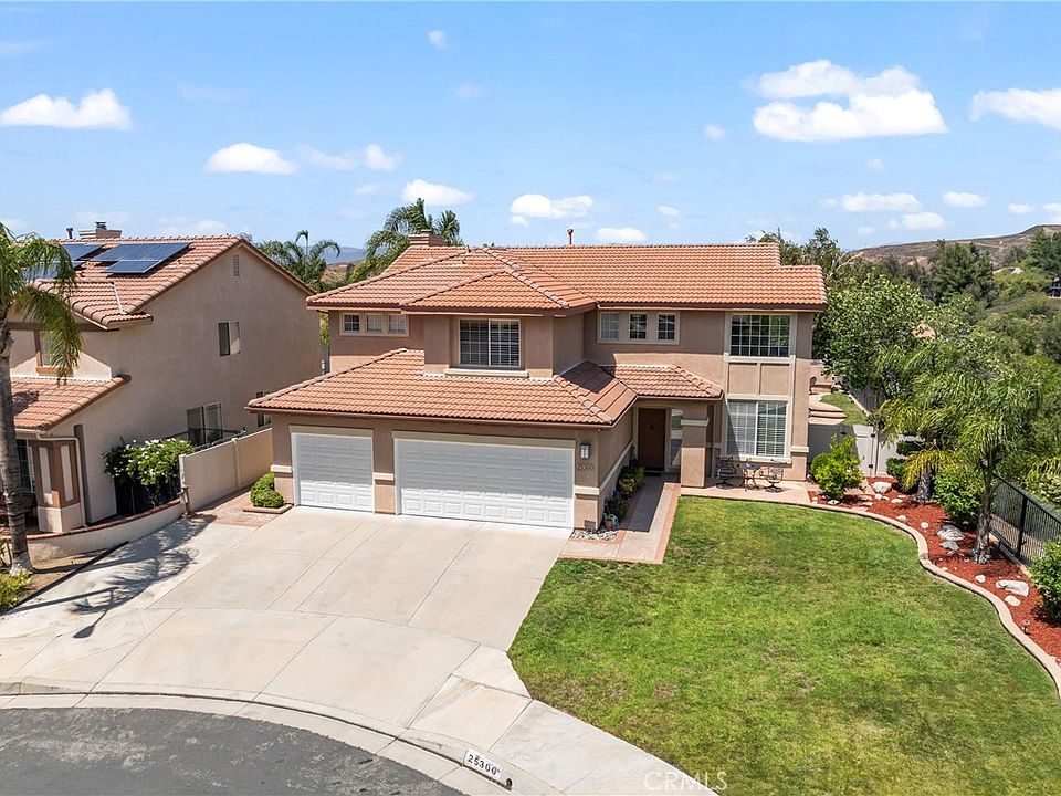 Welcome to the Oak Ridge development of Circle J Ranch! Nestled at the end of a peaceful cul-de-sac, this stunning 4 beroom, 3 bathroom two-story home offers the perfect blend of comfort, elegance and convenience-with No HOA or Mello Roos.This property is ideal for those who crave both space and privacy. Step inside to discover custom flooring throughout, a formal dining room for memorable gatherings and a spacious living room that flows effortlessly into a bright and open kitchen. The kitchen overlooks a cozy family room with beautiful backyard views-perfect for entertaining or simply relaxing with loved ones. Downstairs you'll find a half bathroom conveniently located near the laundry room with direct access to the 3 car garage. Upstairs all 4 bedrooms await, including a luxurious master suite featuring a dual sink vanity in Both bathrooms, a generous walk-in closet and a separate linen space for added convenience. Step out onto your backyard -a serene retreat to savor morning coffee views. The gorgerously landscaped front and backyard are designed for both relaxing and entertaining, complete with a salt water blue pebble tech pool and Jacuzzi to enjoy under the stars. Ideally located near top rated schools, shopping and with easy access to major 5 and 14 freeways. This home has everything you've been searching for. Portable generator that is wired to the house is included.