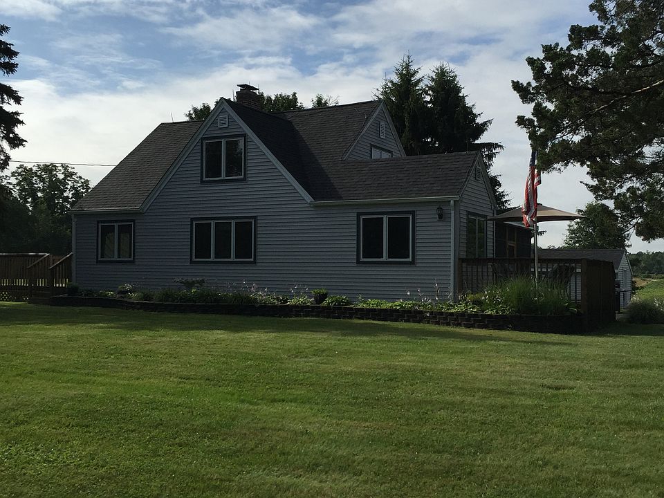 Priced under Appraised Value: Appraised July 2015 and May 2014. Cape Cod home with 1 bedroom on main floor, 2 bedrooms upstairs. All new roofs in 2014, furnace 2009, water heater 2010, water softner 2010, basement is finished with fireplace. Pella Windows and French Door with customized blinds. Barn is 60x60 with 1500 square feet apartment for additional rental income. Two stables ready for horses with an optional third stable. Detached garage, 8x12 shed, 10x20 block building with 20x40 fenced in dog run.