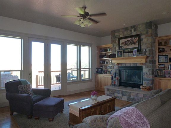 Views,! Beautiful custom home on over 3/4 ac lot. Grt room w/stone fireplace & custom cabinetry, hardwood flooring. Den could be an office or BD Master w/patio access. Master bth: dual sinks, soaker tub, tile. SS appliances. Central vac. Family room FP w/tile surround. Jack-n-Jill bath. Cvd. deck/patio & BB court.