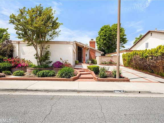 Charming Single-Story Home in Valencia’s Sought-After Old Orchard II Community. Welcome to your dream home—perfectly situated on a quiet cul-de-sac in the highly desirable Old Orchard II neighborhood of Valencia. This beautifully cared-for single-story residence features 3 spacious bedrooms and 2 full bathrooms, blending comfort, style, and effortless functionality. Step into an open and airy floor plan accented by vaulted ceilings and filled with natural light. At the heart of the home is a cozy central fireplace, seamlessly connecting the expansive family room and kitchen—ideal for both everyday living and entertaining. The kitchen offers generous cabinet space and easy flow into the family room, where a wall of windows and sliding glass door lead you out to a private backyard retreat with lush landscaping your peaceful escape. The primary suite is a true sanctuary, featuring vaulted ceilings, dual closets, an en-suite bathroom, and direct access to the tranquil backyard. The secondary bedrooms are comfortably sized and outfitted with plantation shutters. Additional highlights include: Dedicated laundry room with in-room hookups and storage, Direct-access two-car garage side by side, Low HOA dues and no Mello Roos, Close to clubhouse and pool. Don't miss the opportunity to own this exceptional home in one of Valencia’s most beloved communities!
