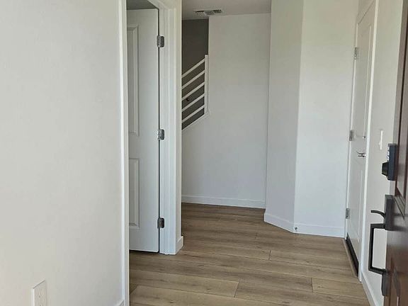 The versatile floor plan offers four bedrooms and 3.5 baths. The first floor includes a good-sized private bedroom with a full bath and sliding glass doors that open directly to the back yard perfect for guests, multigenerational households, or a quiet home office. The main level showcases an open great room that connects the dining area with an upgraded kitchen featuring stainless-steel appliances great for everyday living and entertaining. Additional features include upgraded flooring, soundproofing, double insulation, and a sizable balcony perfect for enjoying fresh air or outdoor relaxation. Upstairs, the primary suite offers a walk-in closet and a dual-sink vanity, along with two more bedrooms and a convenient laundry area. ( The entire house is electric, equipped with a solar panel energy-saving system no gas is used.)