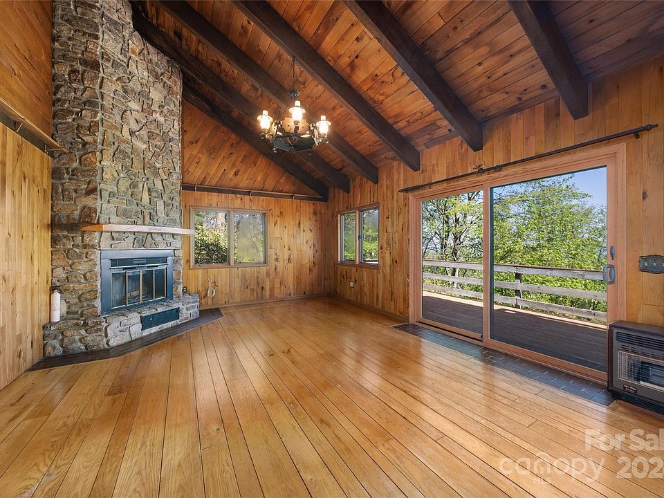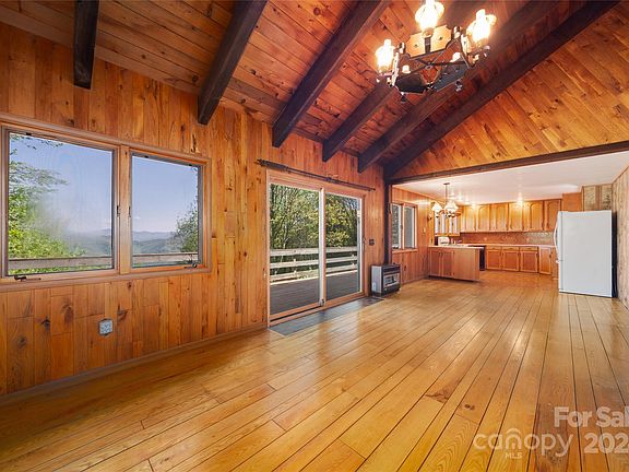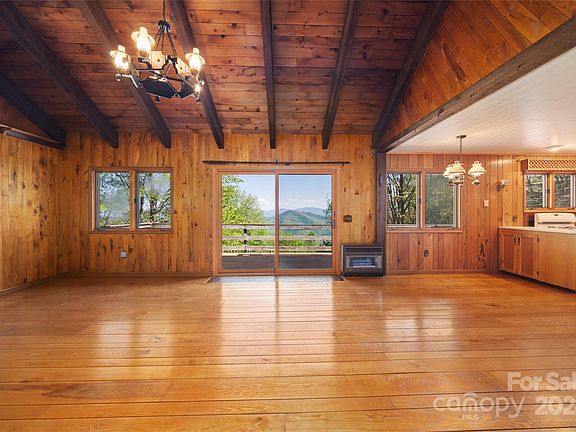 Multiple Offers.. Above Maggie Valley Club discover panoramic VISTAS that stretch as far as the eye can see, 1.05 acres of privacy and rustic style you have been looking for.. with an Opportunity to make it your own with some updating and maintenance. The "Vacation RENTAL Worthy" home has great 'bones' in a Gated Community.. The great room has a solid 2-story stone fireplace, soaring ceilings, ash floors, a dining area and open kitchen.. The extensive views from many rooms make it worth your investment.. Upper level primary suite with ensuite bath.. Lower level Family Room, kitchenette, bath, laundry and wood burning stove. Wrap around deck and patio. Solar orientation warms the home. New roof in 2020.. see receipts for work done. Sellers Home Inspection Report available. 4900' Cool elevation needs no A/C. Community Spring water system. Paved access. The yard has mature trees, privacy, level parking, Garage with workshop. Owner was adventurous and lived here year-round. 1-owner home