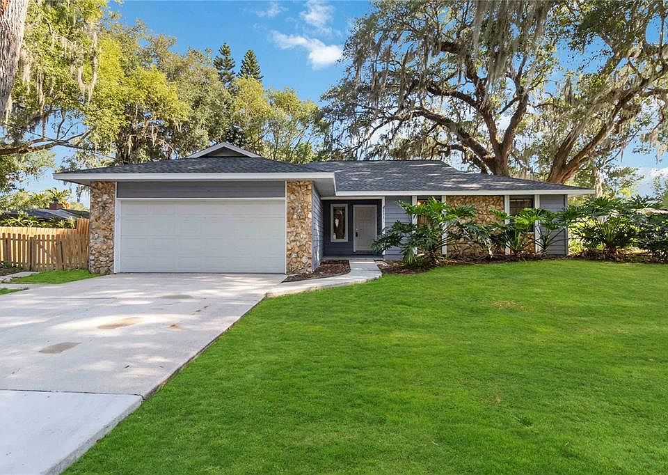 Accepting highest and best offer by Monday as multiple offers have been received! No HOA and priced to sell! Come see this gorgeous home tucked away in the hidden subdivision, Moss Oaks. As you approach the home you will be sure to love all of the trees and outdoor beauty that this corner lot offers. Interior Features include an open family room that includes a stone wood burning fireplace perfect for winter. The Kitchen has brand new appliances and fresh paint throughout. Tile Flooring throughout the home except for the bedrooms which have carpeting. The primary has a built in vanity and sink along with a large walk-in closet. The additional 2 bedrooms share a nice size bathroom. The spacious enclosed patio and fenced in back yard are perfect for entertaining all year long. In addition to the serene scenery you are steps away from the boat ramp that leads to Fish Lake! You are also minutes from shopping, walking distance to the nearest hospital & 1.5 miles from the Turnpike! New roof installed in April 2024, water softener is included, fresh exterior paint, AC 3/2015 and new aluminum ac coils were installed in 9/2020. Come see this stunning home for yourself!