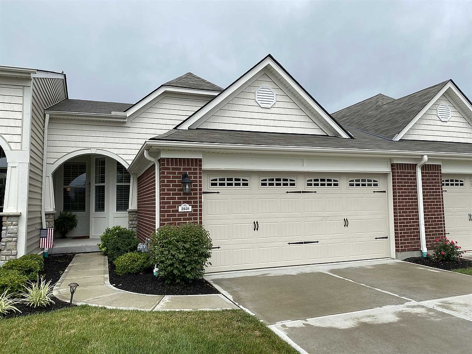 Immaculate Drees Quincy ranch style townhome features an open design with tall ceilings offering a large kitchen and counter bar that is perfect for entertaining. Beautiful wood floors. Stainless steel appliances. 2 car garage. Master bedroom with luxury bath and huge walk in closet. Full finished Lower level includes family room, bedroom, full bath and walk out to private patio. Nice Covered deck with view of trees. Conveniently located to schools and shopping.