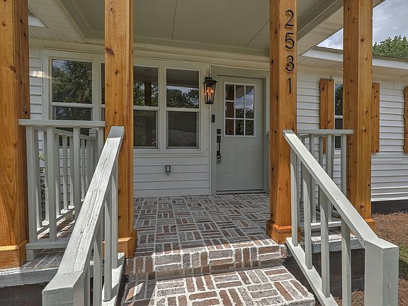 Oak and pine hardwoodsSpacious lotLarge wooded backyardCurtained by live oaks