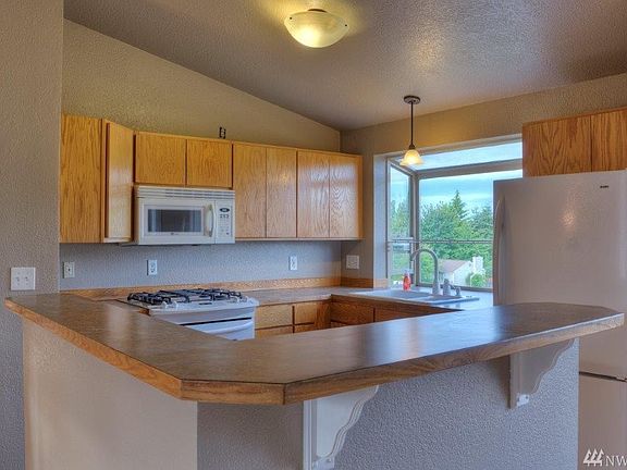 Fresh on market and conveniently located on Kent's east hill. This home has new exterior and interior paint plus brand new carpet. Vaulted ceilings and modern floor plan joins kitchen, dining and living room spaces. Garden window in the kitchen, sliding door to upstairs deck, 3 bedrooms up with full bath plus the master has private full bath. Downstairs family room and utility room including a ¾ bath, access to 2nd deck, patio & fenced backyard. 2-car garage. All appliances stay.
