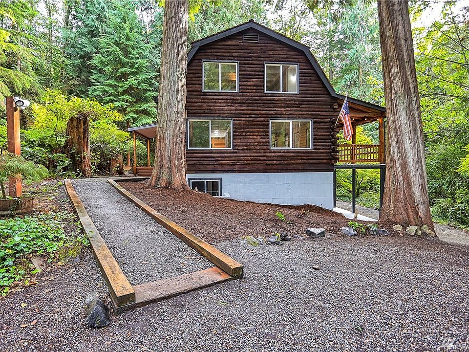 Wow! Take a look at this GORGEOUS Cabin in the Woods Down a Private Driveway! 2,500+ SF, 4 Bedroom, 2.25 Bath Log Home on 2.5 private, wooded acres. Incredible Character, 3 Fireplaces, Large Rooms, and Beautiful Views! The Kitchen is GORGEOUS, has Shaker Cabinets, Quartz Counters, Stainless Appliances, and Tile back-splash. Bathrooms have been updated and have new Tile Shower-Surrounds. Large Rec Room Downstairs. MUST SEE!