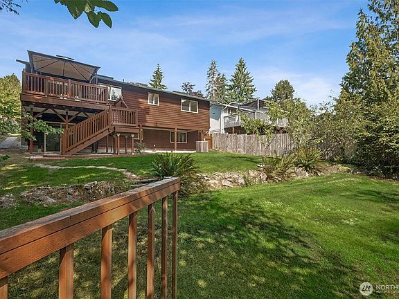 A Peaceful, Private & Spacious Yard that backs to a Greenbelt & Little Soos Creek, you will Love It! This 4 bedroom, daylight basement home has 2 bdrms on Main with 1 3/4 bath, incl Primary ensuite, 9 skylights, spacious Island Kitchen, gas cooking, Fireplace & access to deck & backyard. Lower level has 2 bdrms, 3/4 bath, large laundry/storage room PLUS Family Room accessing patio area to back yard. Fully fenced Yard, front & back PLUS RV Space in newer Extra Wide Driveway & a gently sloped walkway (no steps to front door). Very Well maintained, lots of updates incl. newer 50-year roof, windows (2016), refinished hardwoods & more! Walk to schools, park & easy access to Hwy 18, Covington shopping & future Lakepointe Urban Shopping Village.