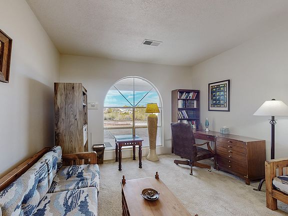 Try UNDER CONTRACT TAKING BACKUP OFFERS. Clean and Classic 4-Bedroom, 2 Full Bath Home with 2 Living Areas, and A Spacious Dining Area in Rivers Edge III. Lovely Kitchen with Breakfast Nook. Primary Bedroom, Living Area and Kitchen Sliding Glass Doors Open Out to the Large Peaceful Back Yard. High Ceilings and Ceiling Fans in All Bedrooms. New Shower, Toilet, Sink and Vanity in Master Bath. Spacious Enclosed Courtyard, Two Car Garage and Convenient Side Yard Access to the Backyard. Large .49-Acre Lot, Walking Distance to the Bosque and Fabulous Views of the Sandias. So Many Possibilities You Must See! Seller Will Consider Selling Furniture and Household Items. Make Us an Offer!
