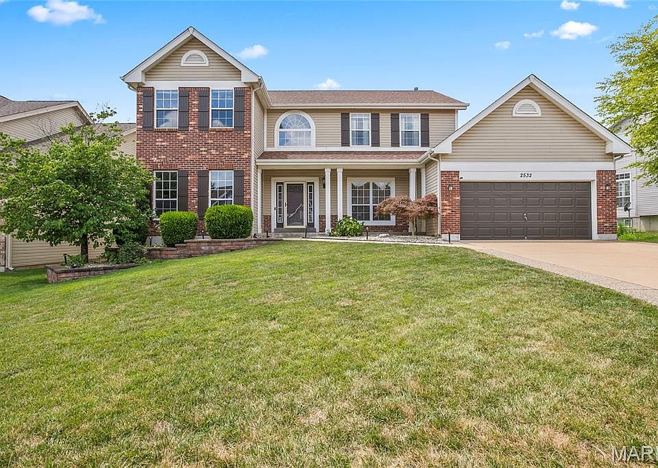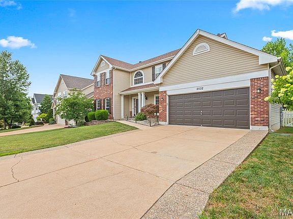 A new home before the holidays? This beautiful two-story home in the Seckman School District in Imperial, MO, is just minutes from South County (and half an hour from a Blues’ game!). This home features a large kitchen with adjacent dinette that opens up to the outdoor space via sliding doors with built-in blinds. The kitchen boasts stainless steel appliances and granite countertops, as well as a separate 6-person counter height dining peninsula. The home also features a formal dining room off the kitchen and entryway, perfect for holiday meals. The family room has a fireplace with plenty of room for a sectional and seating for several guests, as well as a bright bay window that overlooks the fenced-in back yard, patio area and common ground. After you put the kids on the bus, whose stop is right out the front door, step out the sliding door and under the quiet gazebo for a cup of coffee. The back yard is complete with maintenance free vinyl fencing, a gate to the common ground, fire pit, gazebo and basketball hoop. This home is steps away from the stocked lake and community pool. Wood floors are throughout the home. Upstairs is a full bath, two bedrooms (with a potential third), as well as a very large primary bedroom and ensuite (soaker tub, separate toilet area, walk-in closet and double granite vanity). New roof was installed summer 2025. Call today for a private showing.