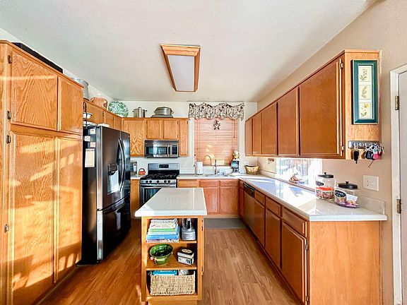 Welcome to this beautifully updated home, ideally situated in a quiet, close-knit community just a mile from shopping center. This spacious two-story home offers 4 bedrooms, 3 bathrooms, and an impressive array of modern upgrades. Step inside to find vaulted ceilings, sleek new laminate flooring, and custom cabinetry with quartz countertops in a bright updated kitchen perfect for your culinary adventures. Enjoy cozy evenings by the tile surrounded fireplace with mantle. Thoughtful design includes a convenient downstairs bedroom and bath, ideal for guests.