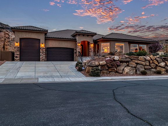 Don't miss out on this amazing opportunity. This elegant custom home is a must see property. Located in the prestigious Stone Cove community comes with amazing views and quick access to everything St. George has to offer. The Expansive kitchen and family room are the heart of this home and is perfect for entertaining. Three En suite bedrooms each have their own outside entrances, large closets, and spacious bathrooms. The Primary Suite features spacious dual closets & vanities, a Jetted tub, and an oversized stone shower. Amazing 3 car plus oversized garage. The back patio entertainment area is loaded with Pergola, patios, gas BBQ and prepped with 220 power for a hot tub or swim