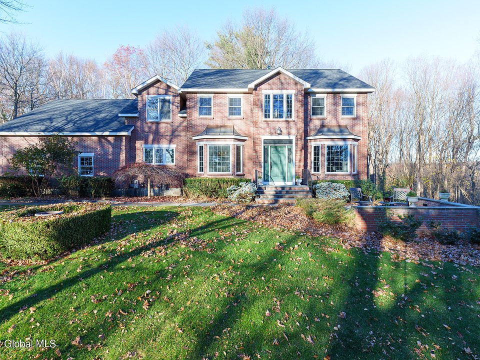 Perched upon a private 2.55 acre lot in a gorgeous and sought after Estate development this custom center hall colonial offers unbelievable features everyone would so desire.Privacy and tranquility abounds,oversized 2 car garage w/plentiful storage,custom gourmet eat in kitchen,first floor office w/handsome built ins,amazing and relaxing 3 season room perfect for day and night entertaining,2 stunning bay windows,5 generous size bedrooms(1 en-suite primary bedroom)3 full baths,1 half bath,excessive amount of storage,fully finished basement w/a game room+family room,custom mature landscaping throughout property,total rooms of 20,extremely well kept with zero deferred maintenance,magnificent hardwoods,2 inviting fireplaces,and so much more!