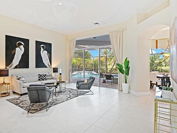 MOVE-IN READY!! LIVE THE COUNTRY CLUB LIFESTYLE! GOLF COURSE POOL HOME MAINTAINED BY ORIGINAL OWNERS, NEW ROOF INSTALLED 2023, UPDATED KITCHEN, GRANITE COUNTERS, 42" WOOD CABINETS, STAINLESS STEEL APPLIANCES WITH SEPARATE BREAKFAST AREA AND SNACK COUNTER. HIGH-VOLUME TRAY CEILINGS, LARGE OPEN LIVING SPACES, CROWN MOLDING, A TRIPLE SPLIT FLOOR PLAN & LARGE SECONDARY BEDROOMS. LUXURIOUS MAIN SUITE & BATH, 2 CUSTOM WALK-IN CLOSETS, FRENCH DOORS TO PATIO. HUGE SCREENED COVERED POOL/PATIO, ACCORDION SHUTTERS, 3 CAR GARAGE WITH STORAGE CABINETS. 5TH BEDROOM CURRENTLY USED AS OFFICE. NEUTRAL TILE AND HIGH-IN LAMINATE FLOORS.